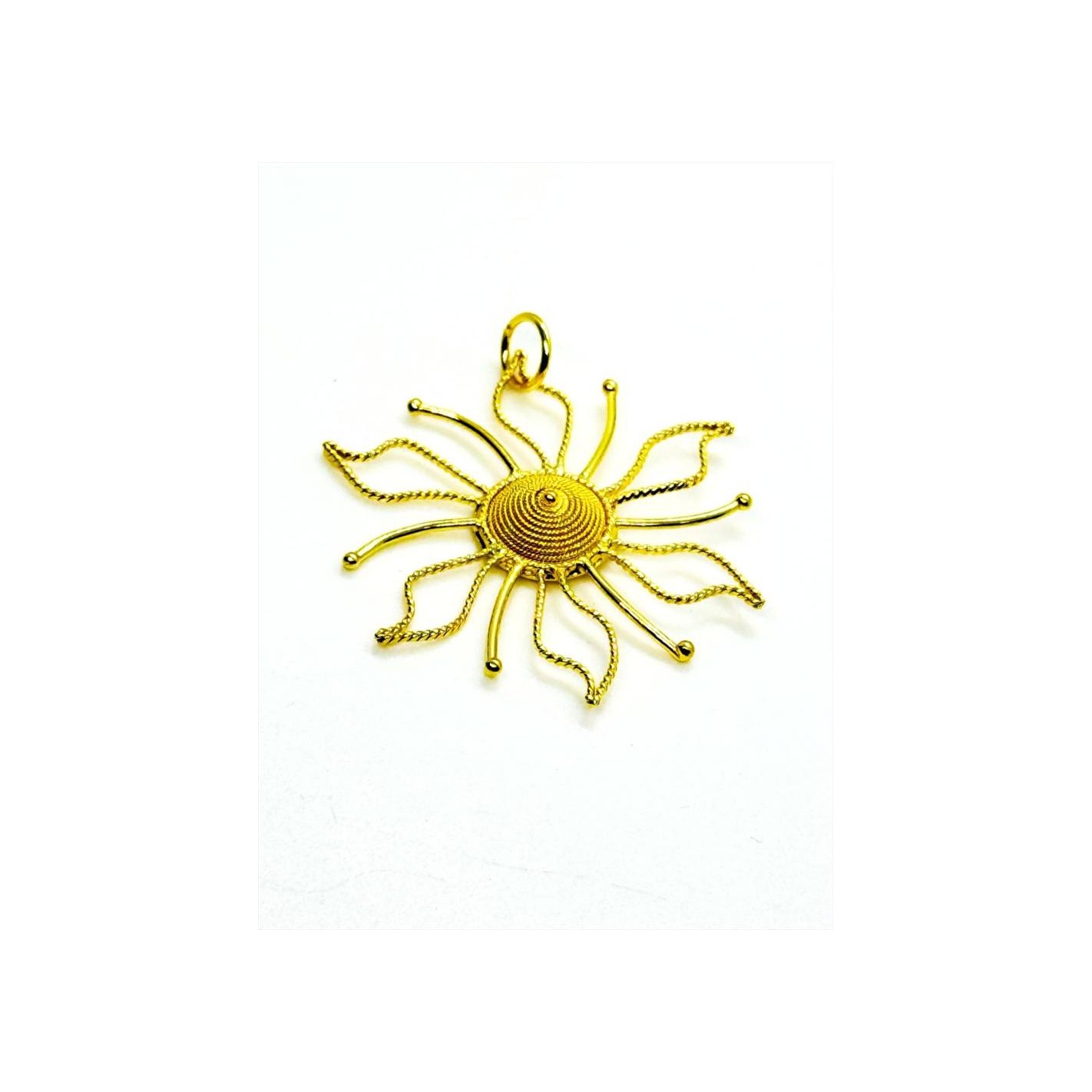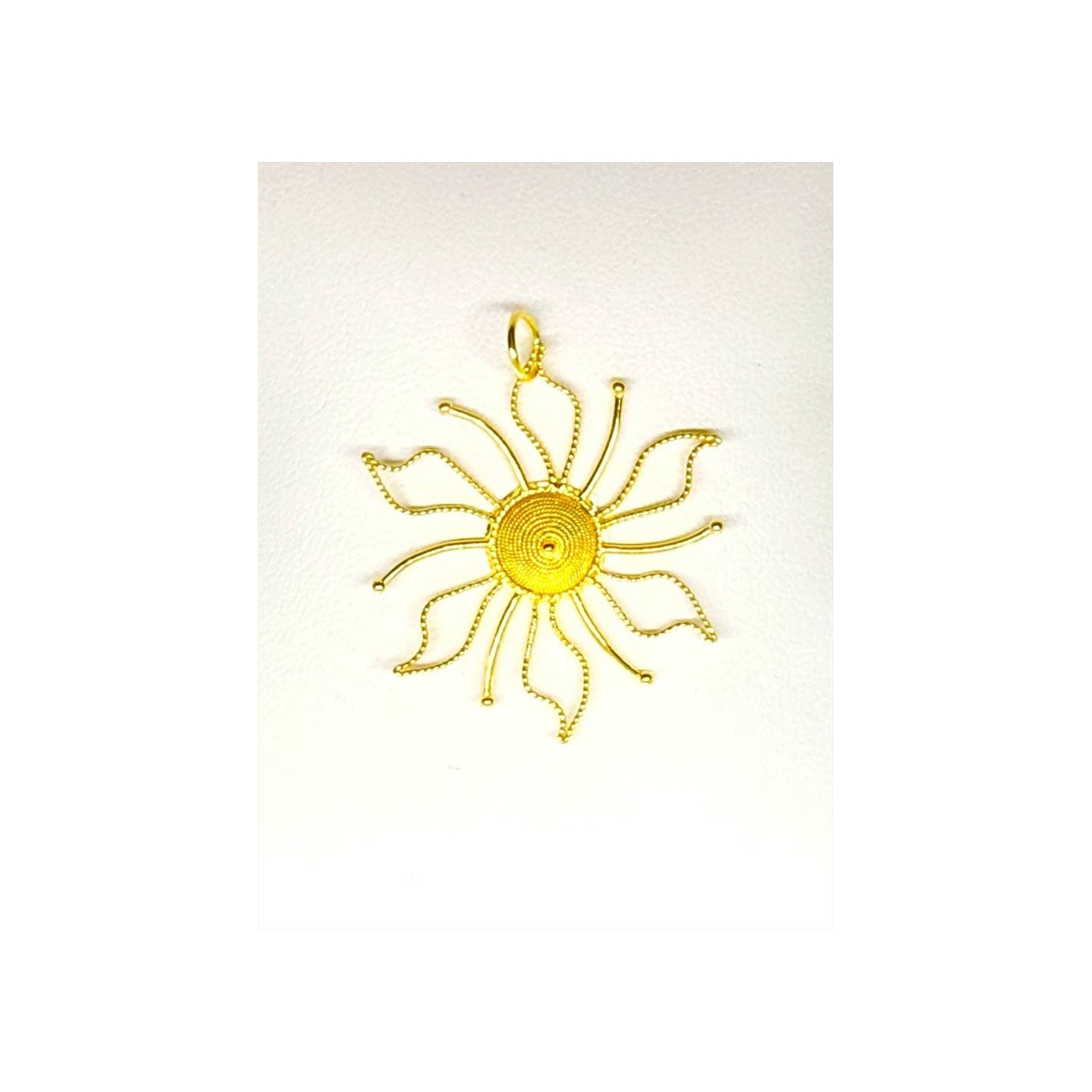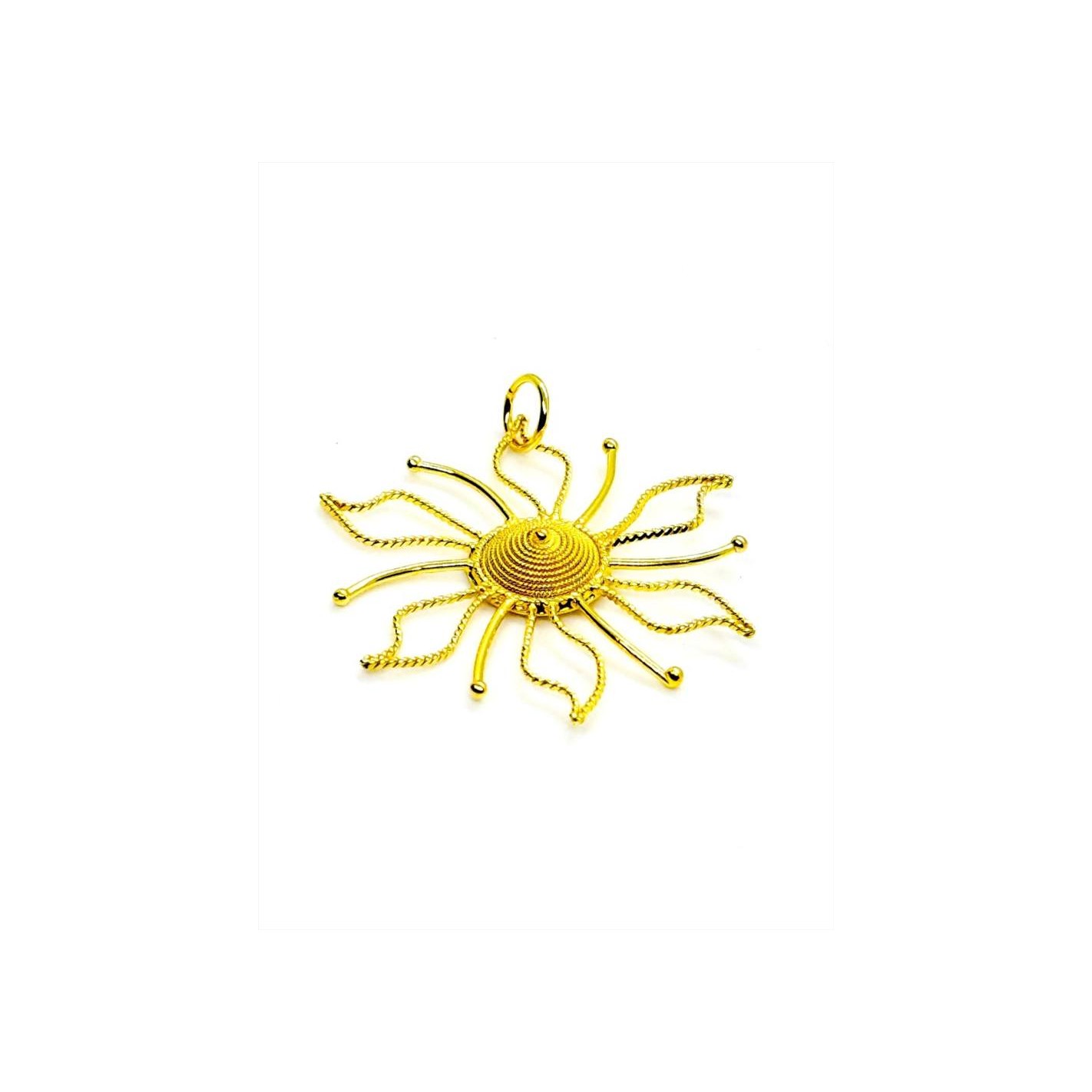 Su Sole Pendente Tradizionale Sardo in Filigrana d'Oro 18 Kt