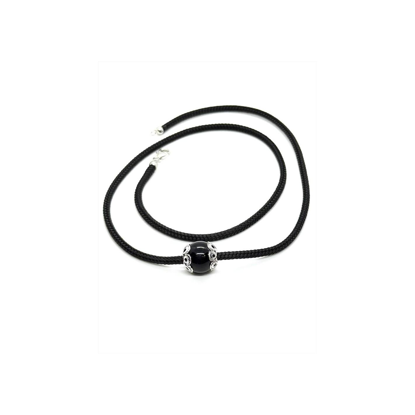 Diametro sfera Su Coccu 1,20 cm.- sagola nera con chiusura in argento a pesciolino da cm.50.