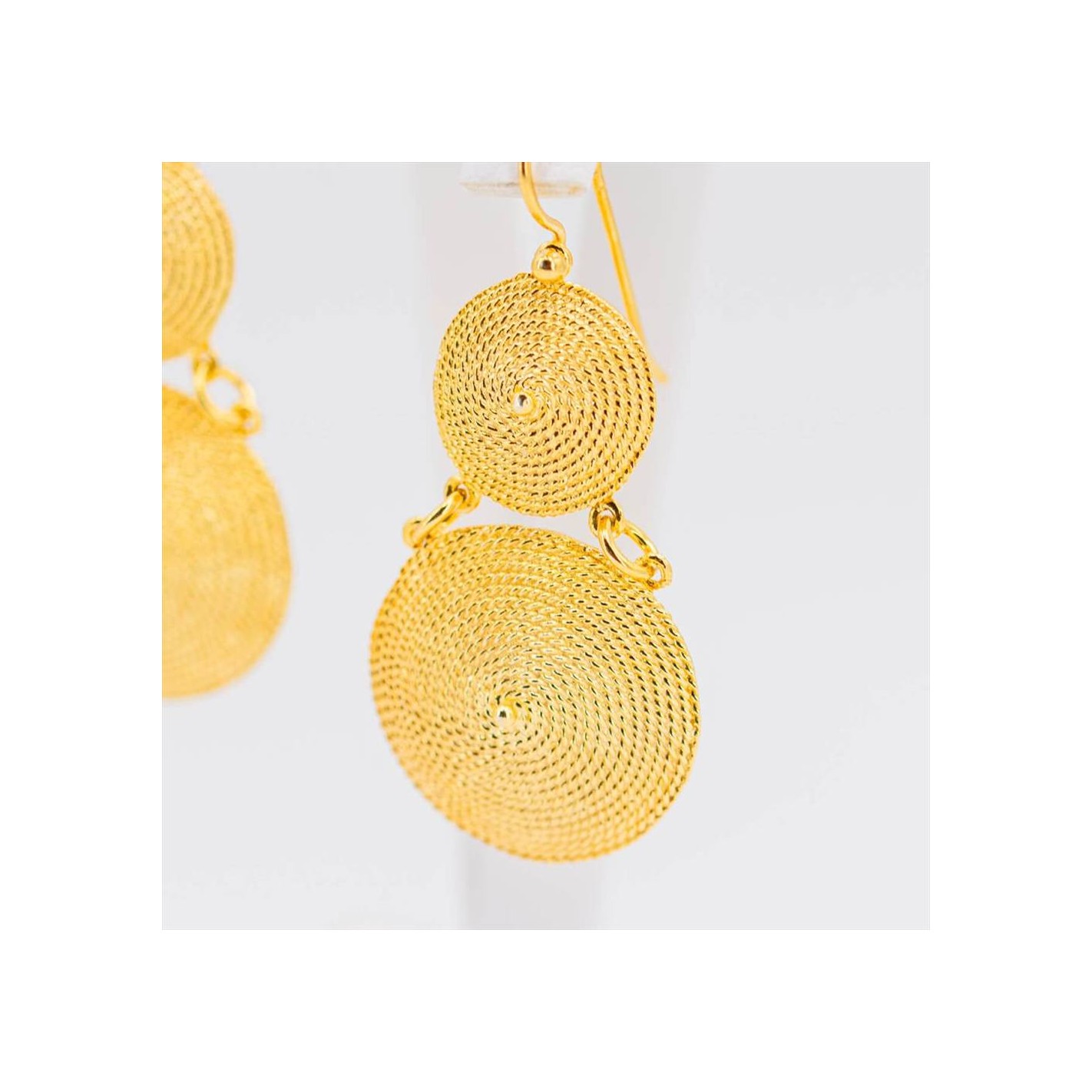 Orecchini Sa Corbula in argento 925/ooo dorato forgiato con due elementi disgiunti a scalare: Altezza totale orecchino cm.5 - Diametro prima corbula 1,5 cm - Diametro corbula finale cm. 2,25 cm. con chiusura a spillo.