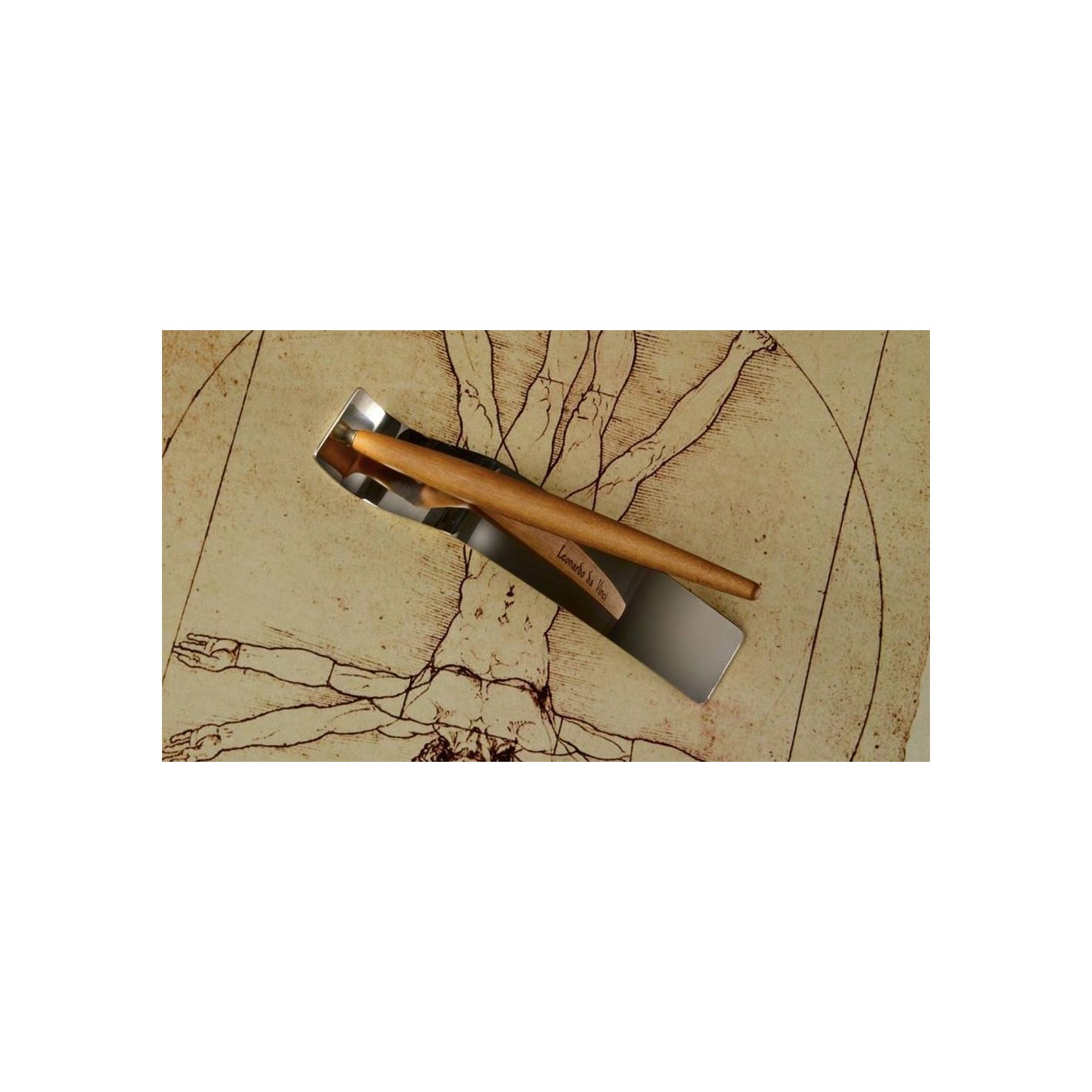 legno, dalla forma dinamica, che ricorda la forma della piuma d'oca e gli studi